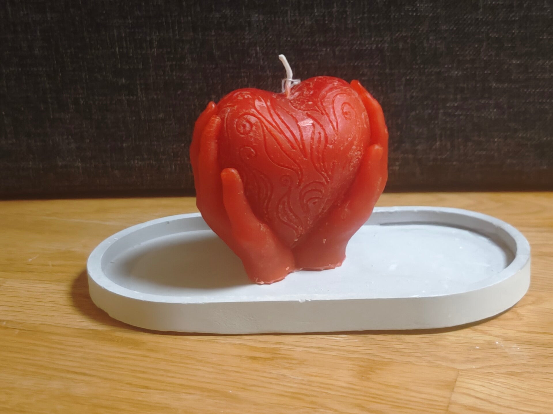 Kerze aus Parafinwachs in Rot. incl Tablet aus Keramik Gips.
