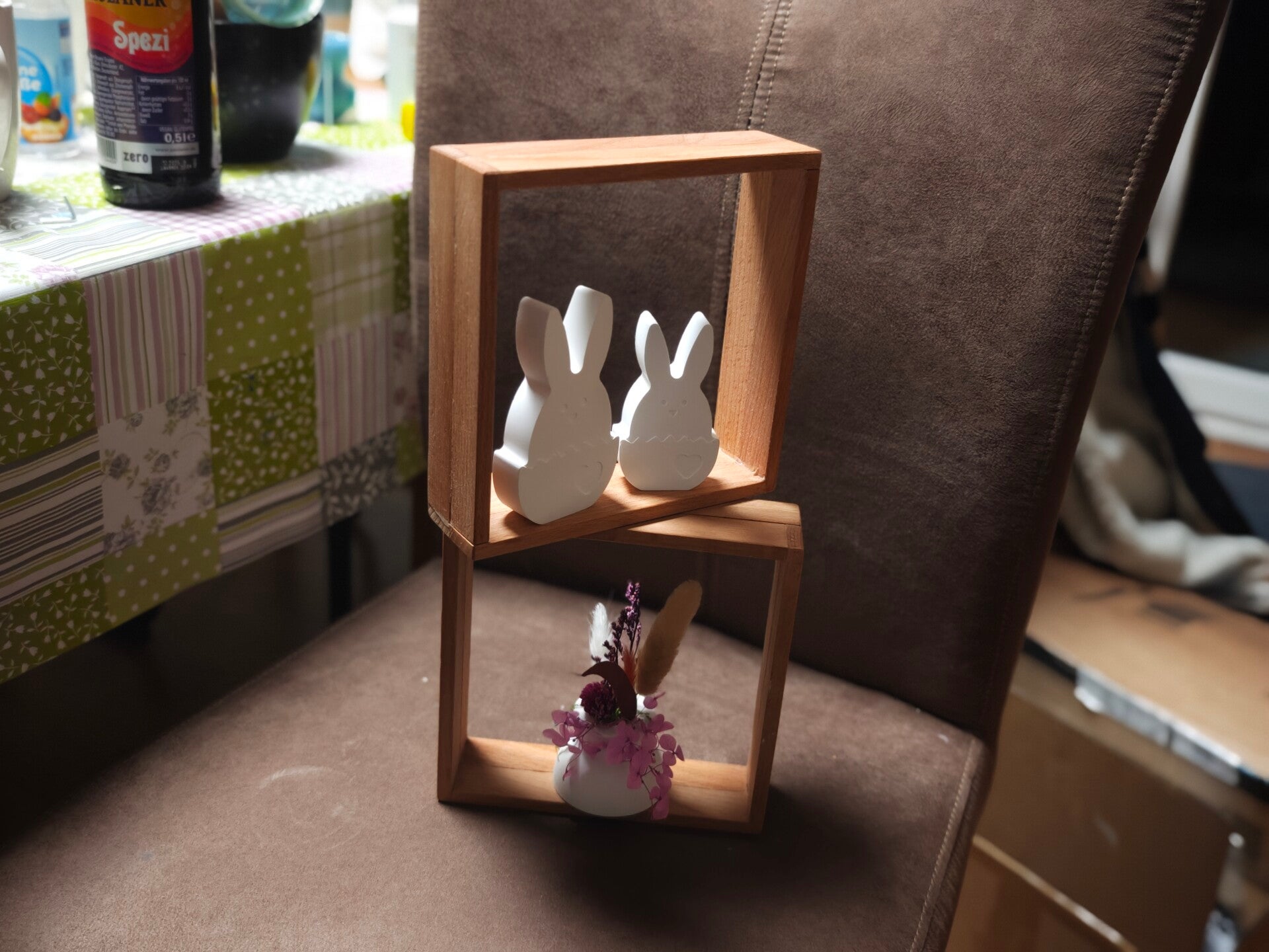 2 Holzrahmen Buche 16*16*4,5cm, 3 Osterhasen aus Keramik Gips 8*4*1,5cm im Set