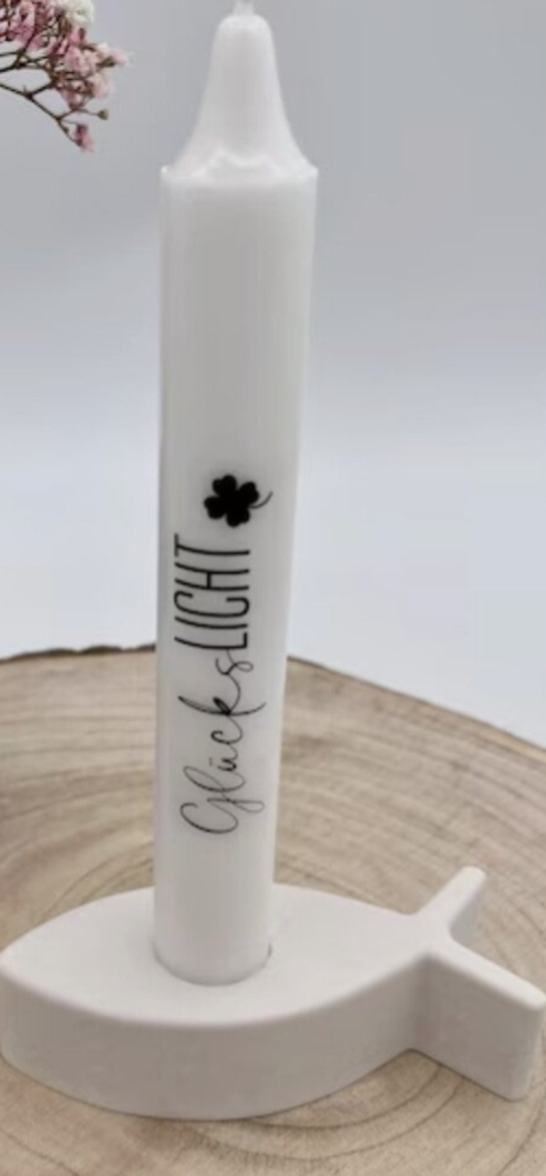 Handgemachte Stabkerze 12cm hoch, mit Halter aus Keramik Gips.