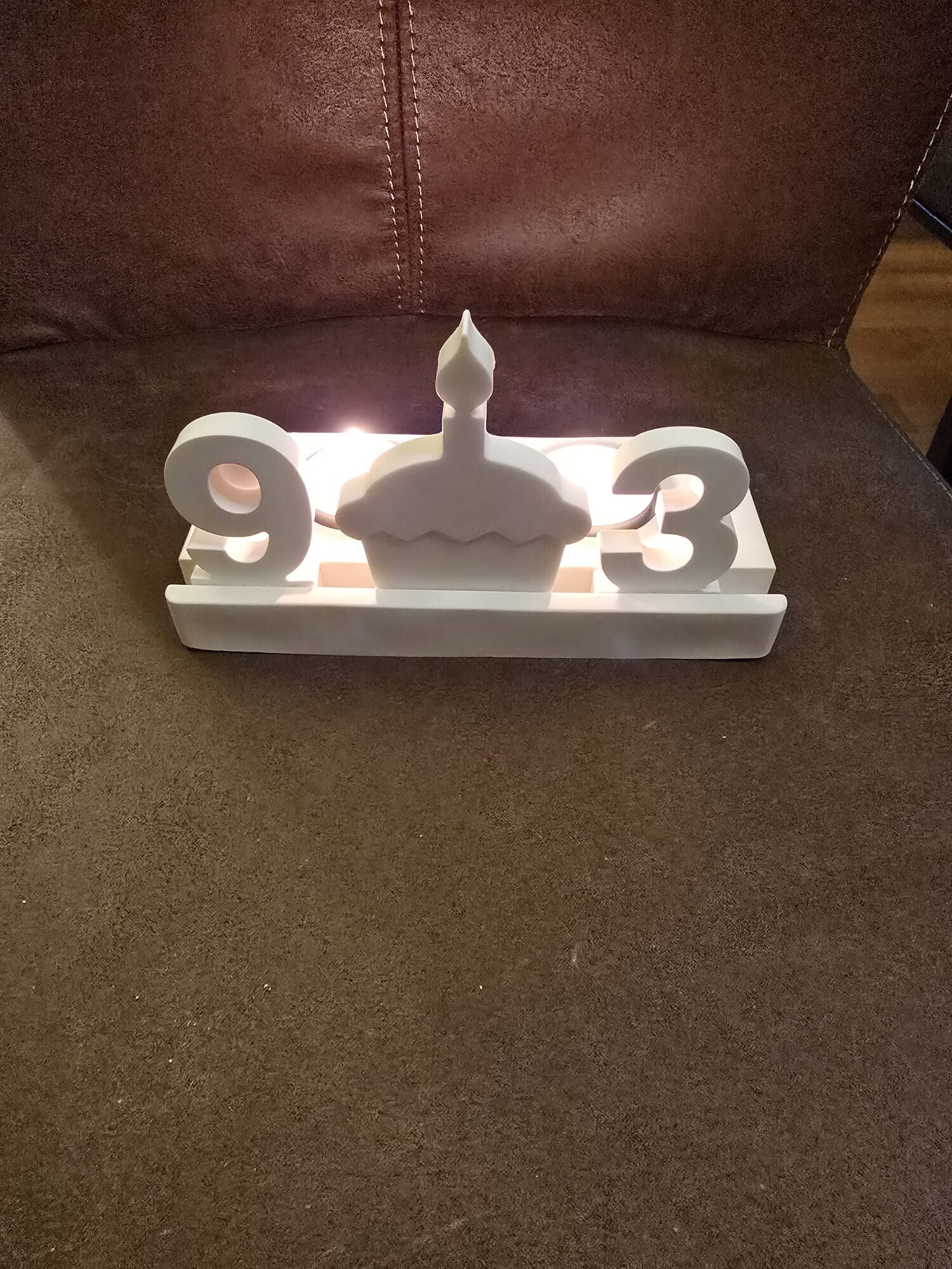 Set aus Halter mit 2 Teelichtern, Kuchensymbol und 2 Zahlen von 1-9 aus Keramik Gips