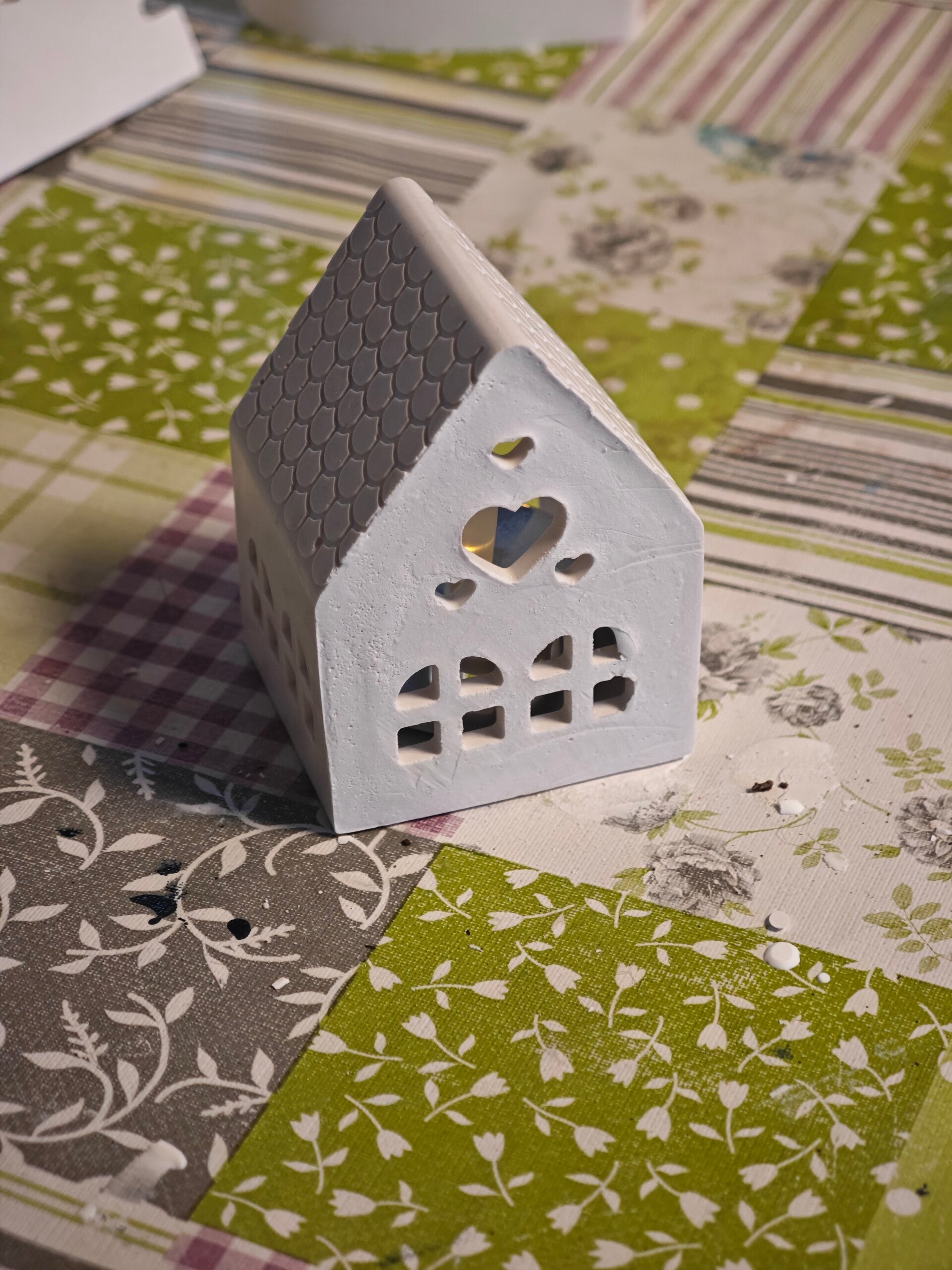 Häuschen mit Teelicht LED aus Keramik Gips