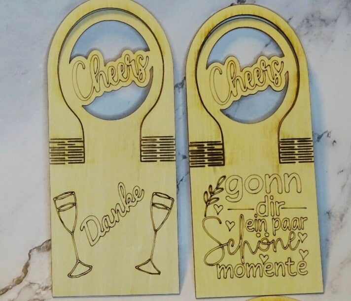Mit diesen Flaschenanhängern verleihst du deinem Geschenk eine persönliche Note – schlicht, edel und nachhaltig aus Holz gefertigt.