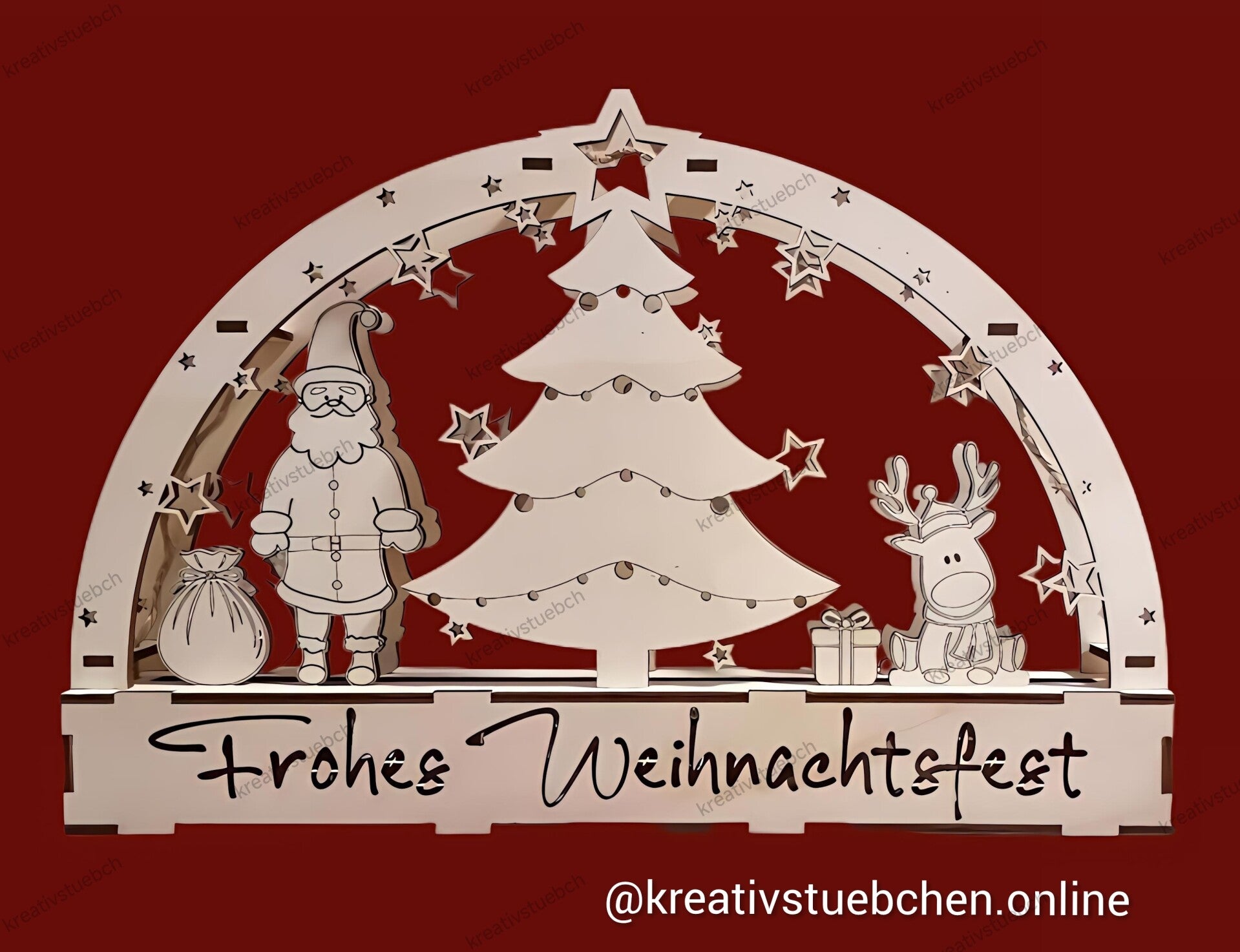🎄 Weihnachtlicher Schwibbogen mit LED-Lichterkette – präzise gelasert aus 3 mm Sperrholz 🎅✨