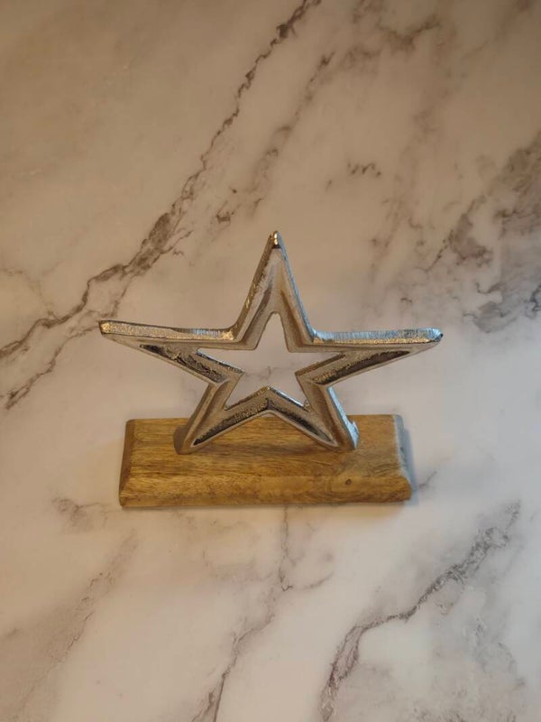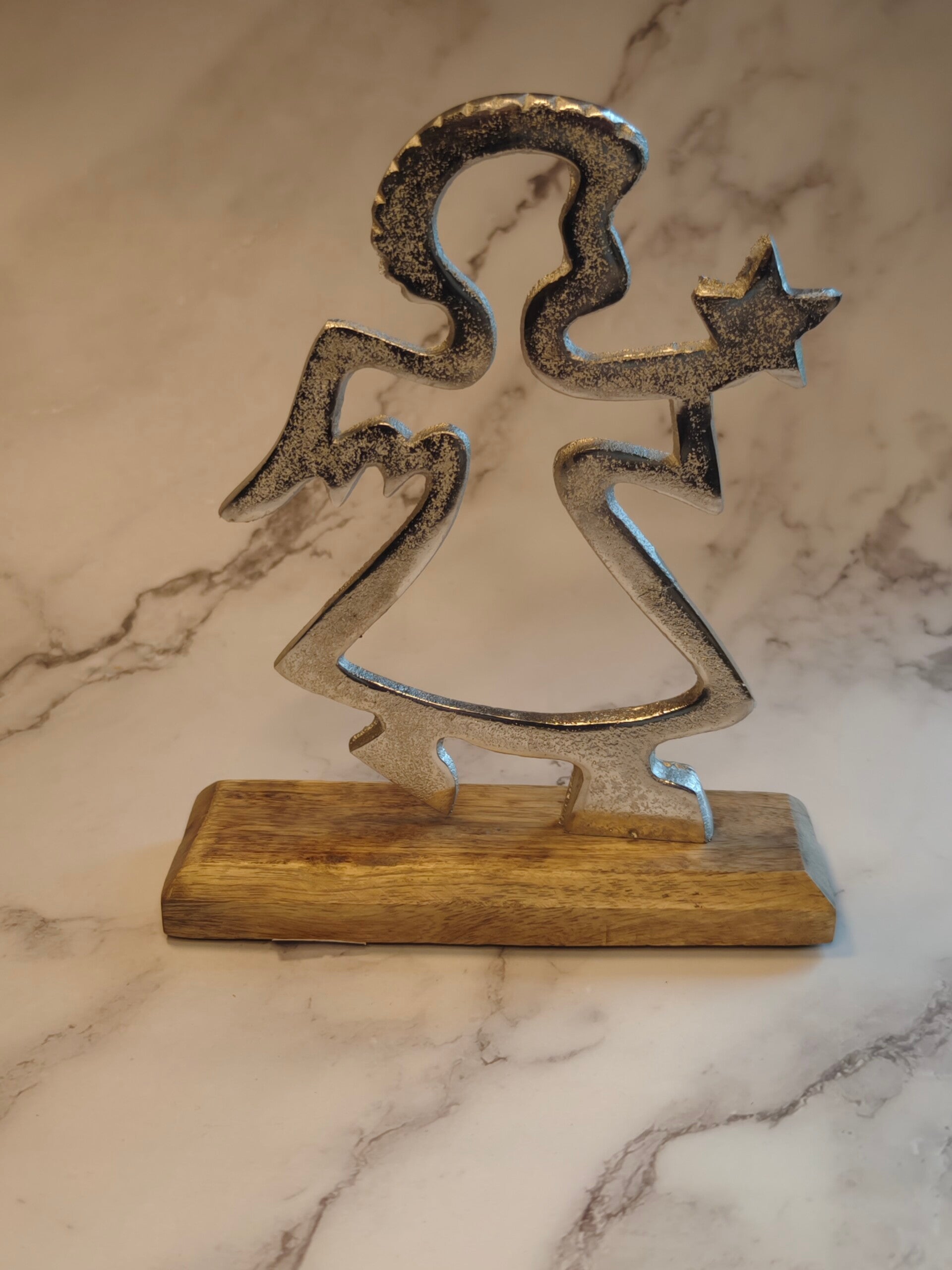 Metallfiguren auf Holzsockel – Stern & Engel – stilvolle Weihnachtsdeko