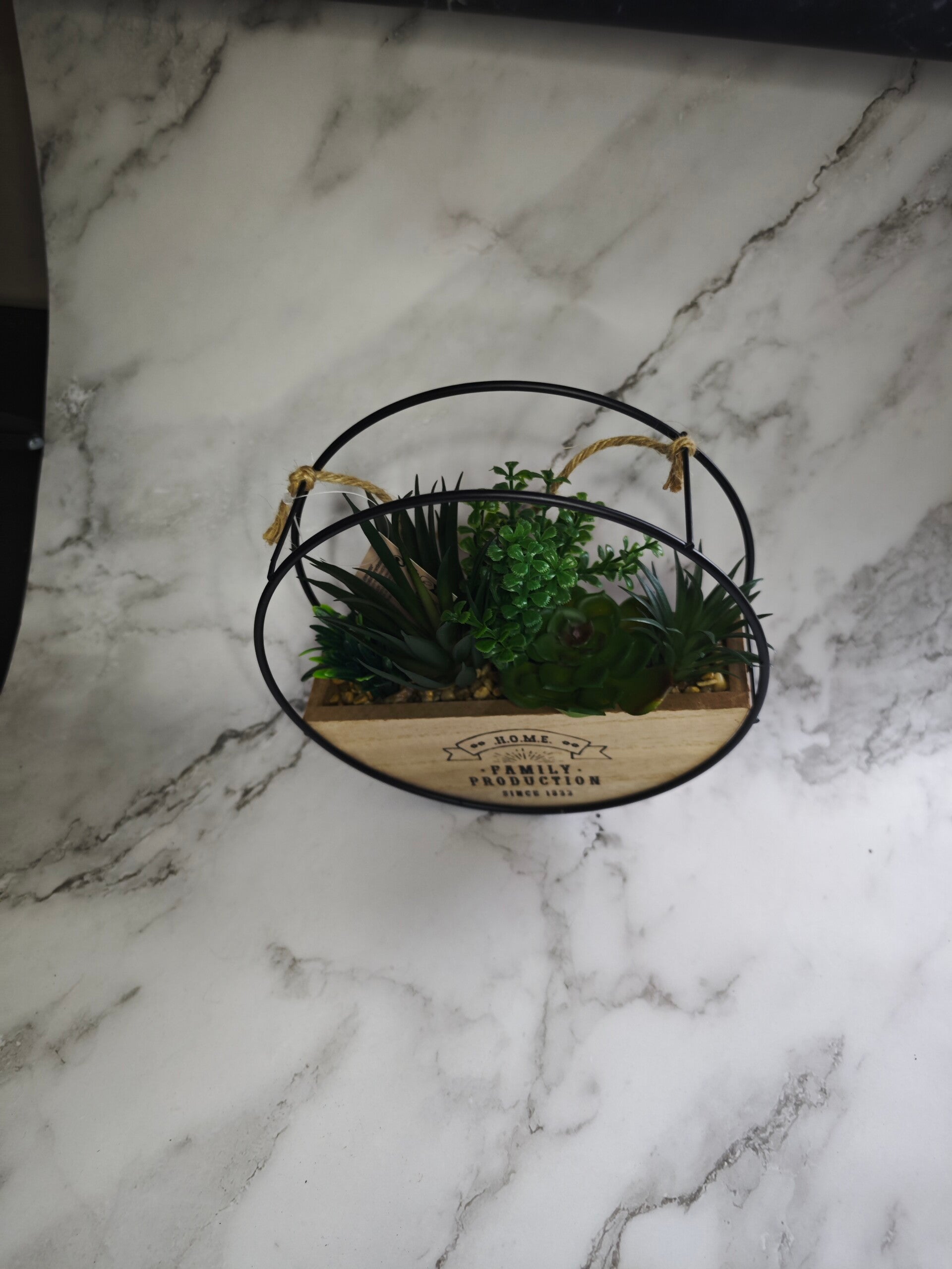 Eine wunderschöne Kombination aus Metall, Holz und Pflanzenoptik – perfekt für ein gemütliches Zuhause.