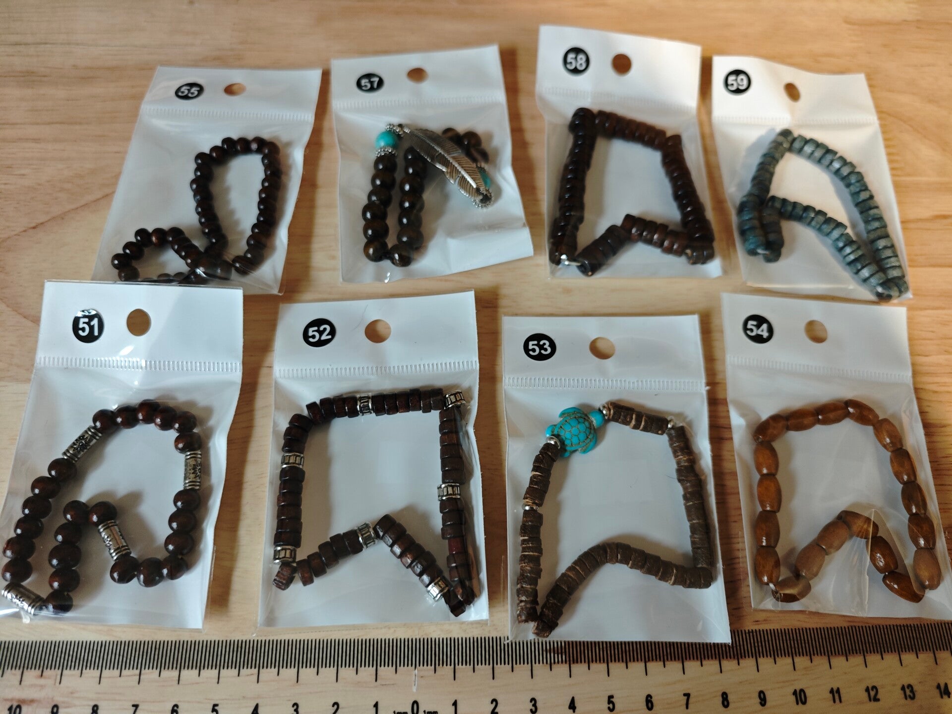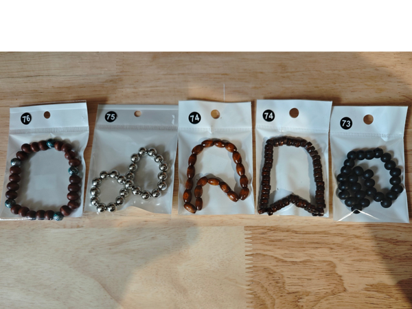 Verschiedene Armbänder aus Holz und Acryl